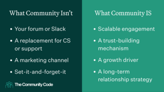 To temper expectations and help leaders better anticipate the investment ahead, Zerkel often advises marketers on what a community is not:
