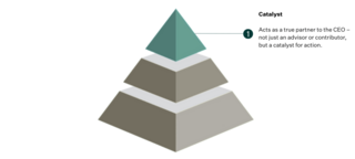- Catalyst. Finance leaders operating at this level will actively stimulate behavior changes across the organization – not just an advisor or contributor, but a catalyst for better outcomes and specific action. While a strategist identifies solutions, a catalyst makes the change happen.